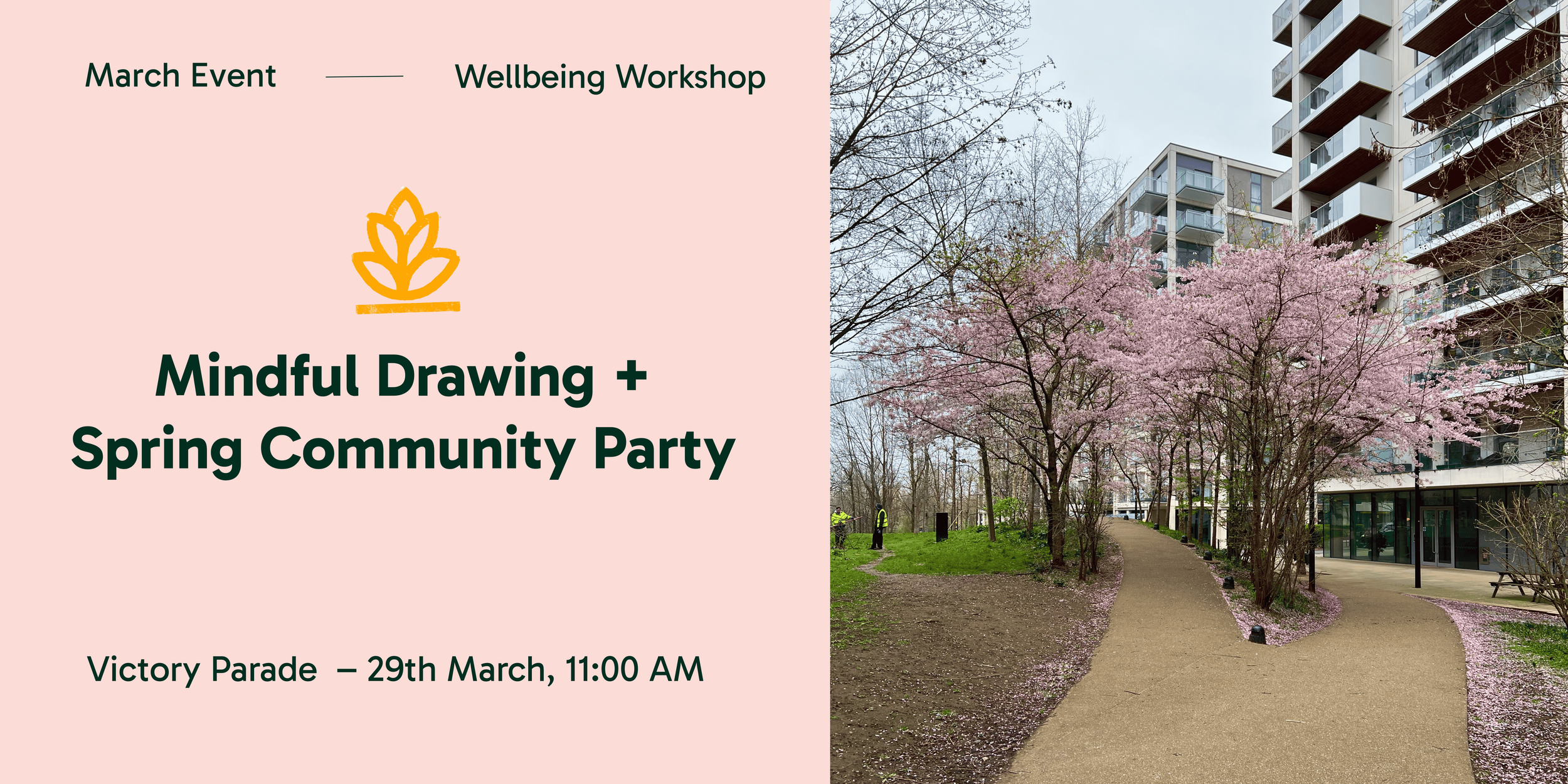 11:00 - 12:00 PM - We’re kicking things off with a mindful drawing workshop — a chance to soak in the beauty of the Cherry Blossoms along Victory Parade while connecting with fellow residents. Feel free to bring your own art materials - you can draw, paint, collage, whatever you enjoy.